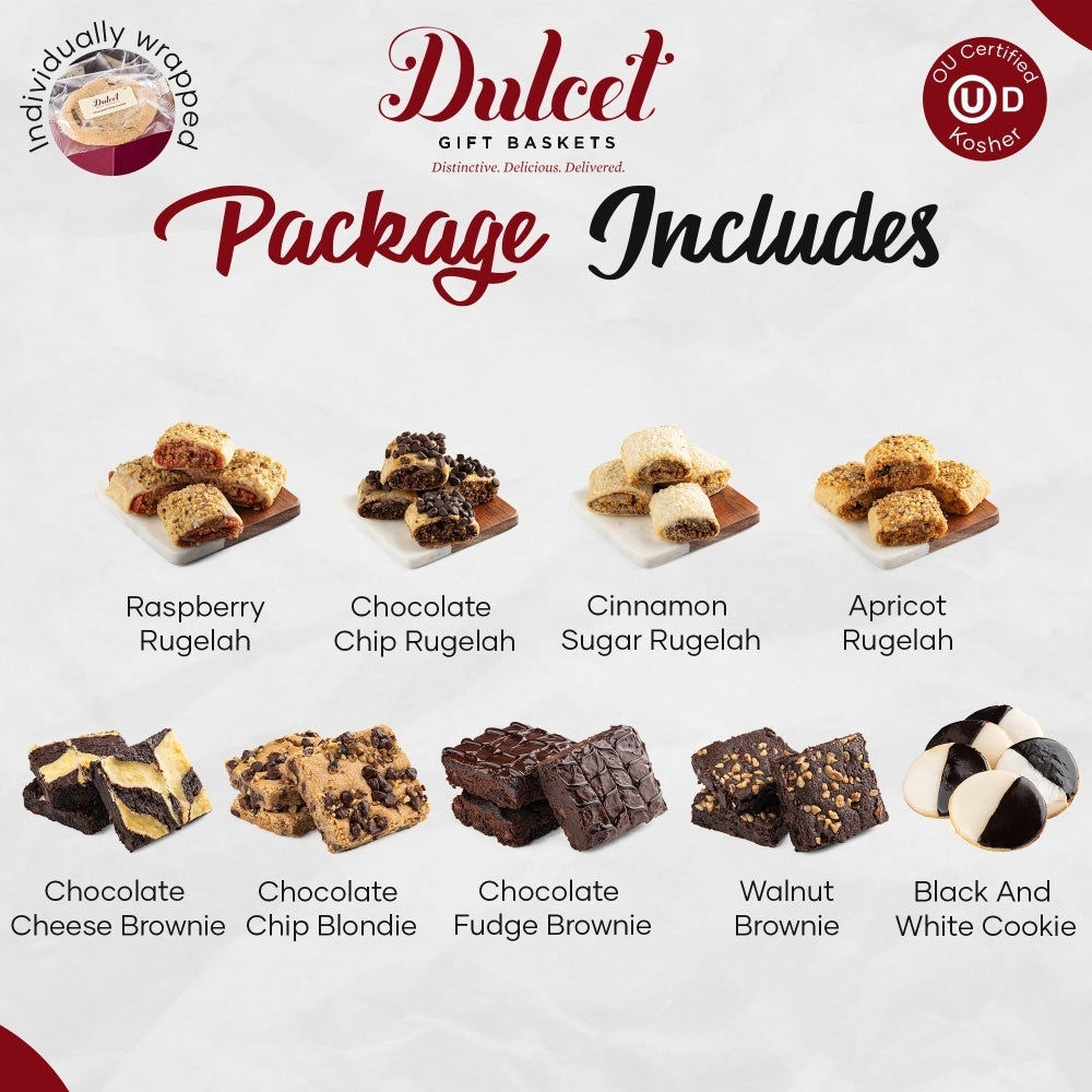Dulcet Gift Baskets is here to bring you the gold standard in baked goods!All of our items are baked in our own bakery using the finest ingredients and highest standards of freshness. To view the nutritional information of each item, click on the links below. You can also find a list of items in each basket by going to the gift includes tab in the product detail page.