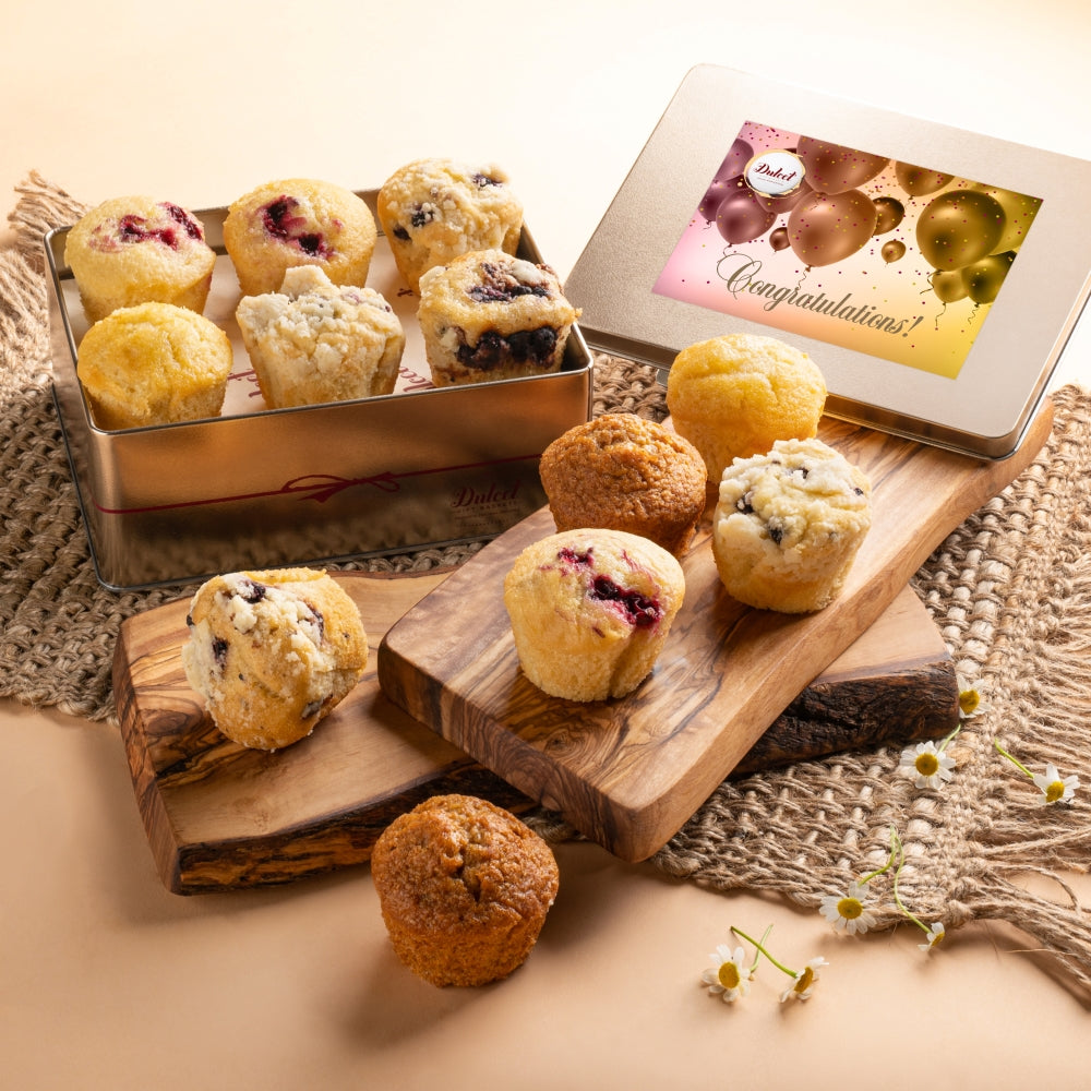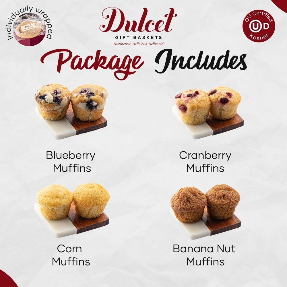 Looking for the perfect gift they’ll love? Looking to complement your breakfast or dinner? Purchase Dulcet’s muffin gift basket today! Always fresh, always loving wrapped, and guaranteed to bring a smile to everyone – always!