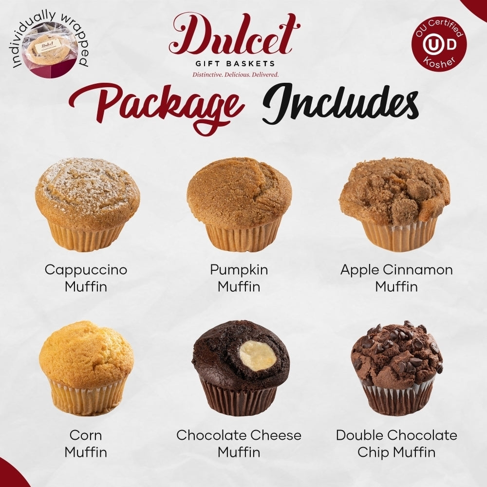 Reminiscent of the rustic leaf colors and nippy air, Dulcet’s Assorted Muffin Gift Basket is a significant way to usher in the new season.