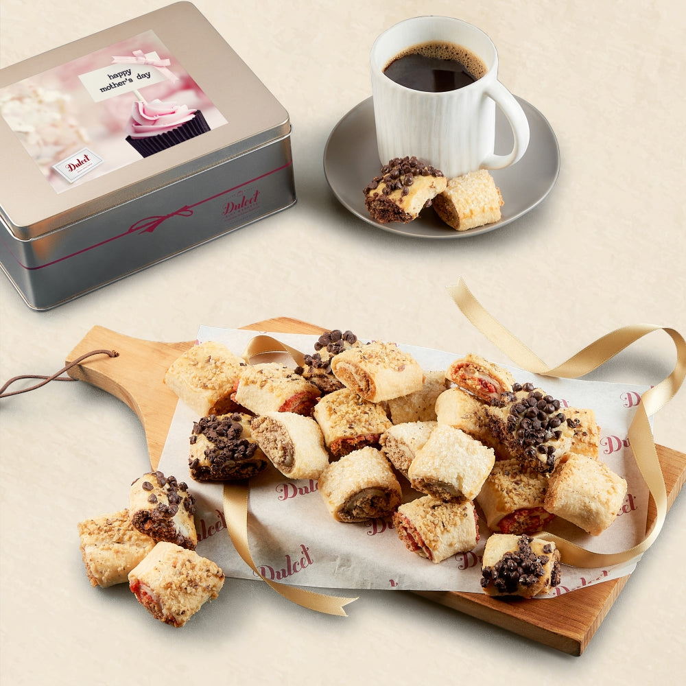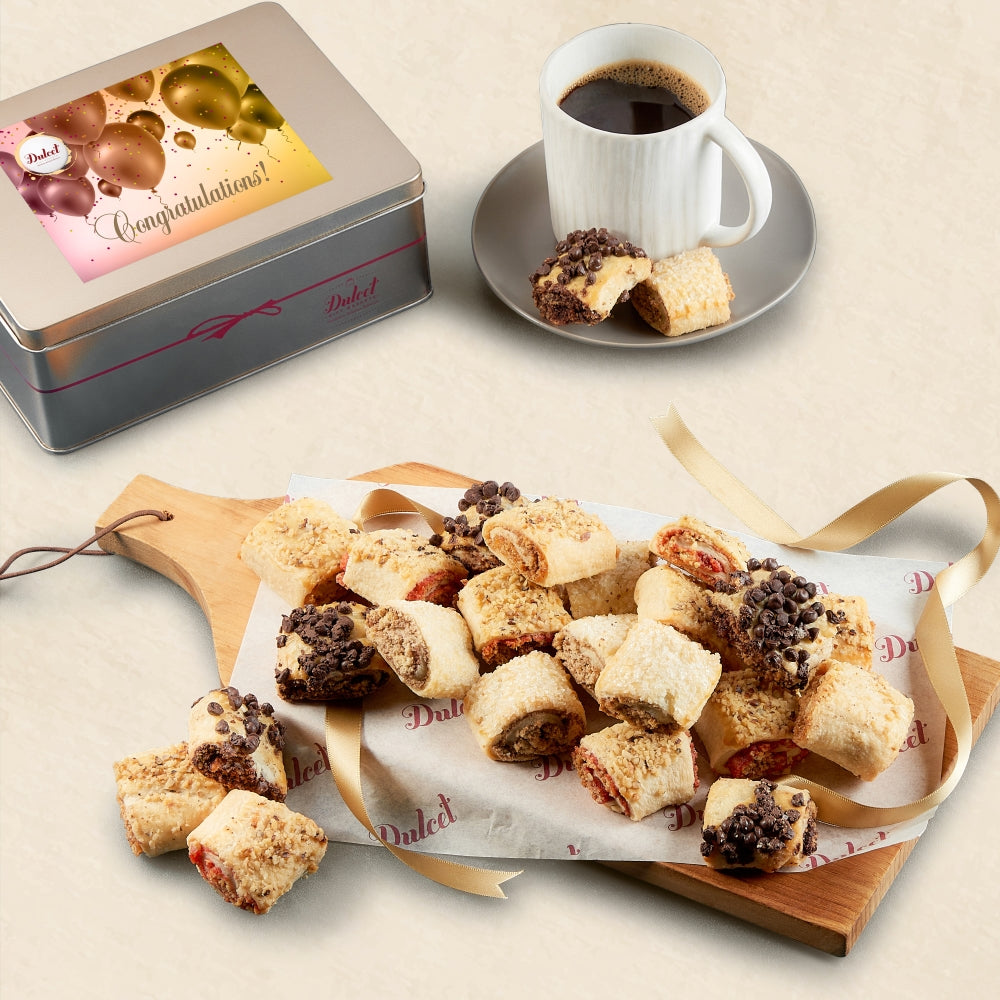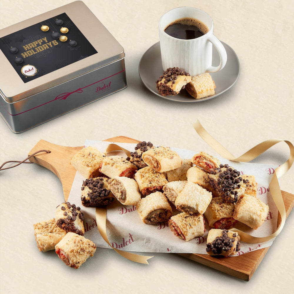 Butter soft, melt-in-your-mouth, and oh so tasty, this tin container is brimming with flaky pinwheels.