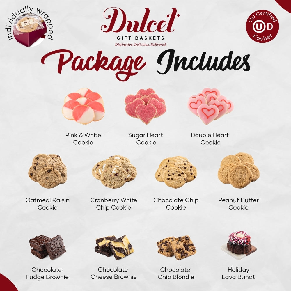 Dulcet Gift Baskets is here to bring you the gold standard in baked goods!All of our items are baked in our own bakery using the finest ingredients and highest standards of freshness. To view the nutritional information of each item, click on the links below. You can also find a list of items in each basket by going to the gift includes tab in the product detail page.