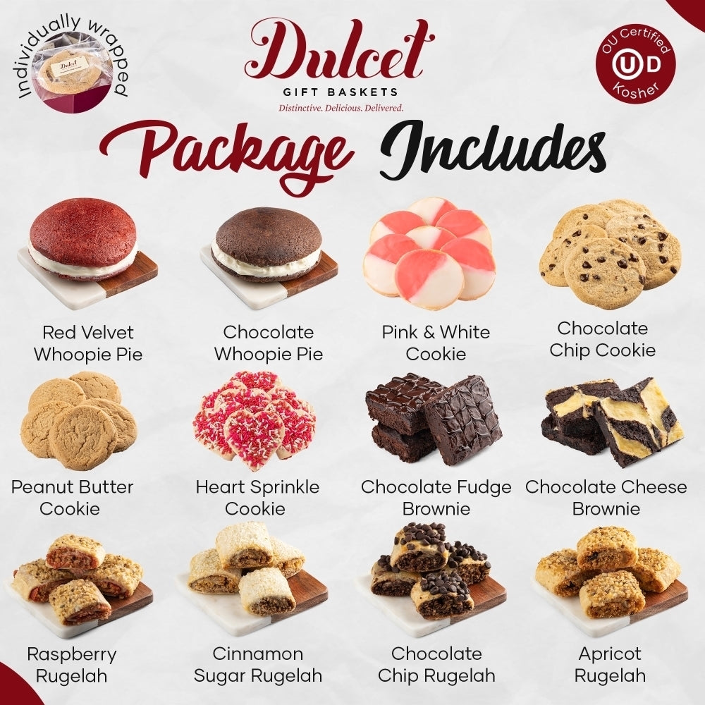 Dulcet Gift Baskets is here to bring you the gold standard in baked goods!All of our items are baked in our own bakery using the finest ingredients and highest standards of freshness. To view the nutritional information of each item, click on the links below. You can also find a list of items in each basket by going to the gift includes tab in the product detail page.