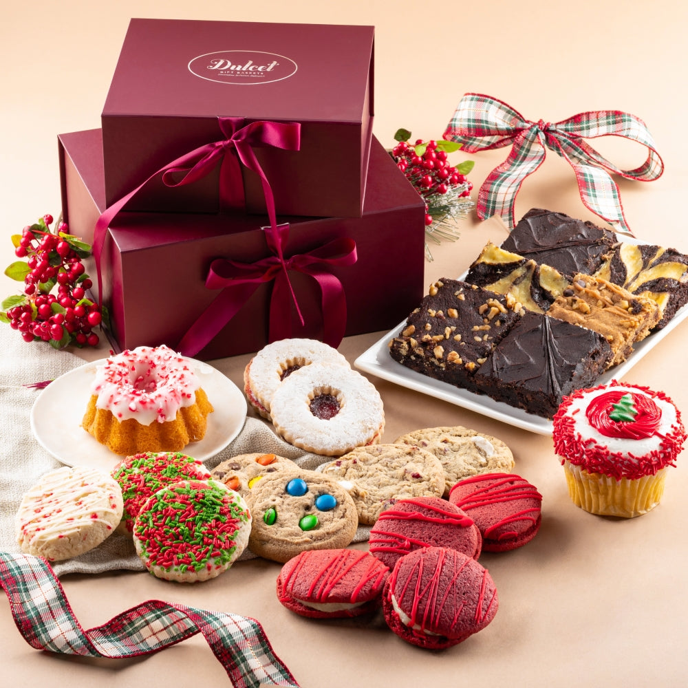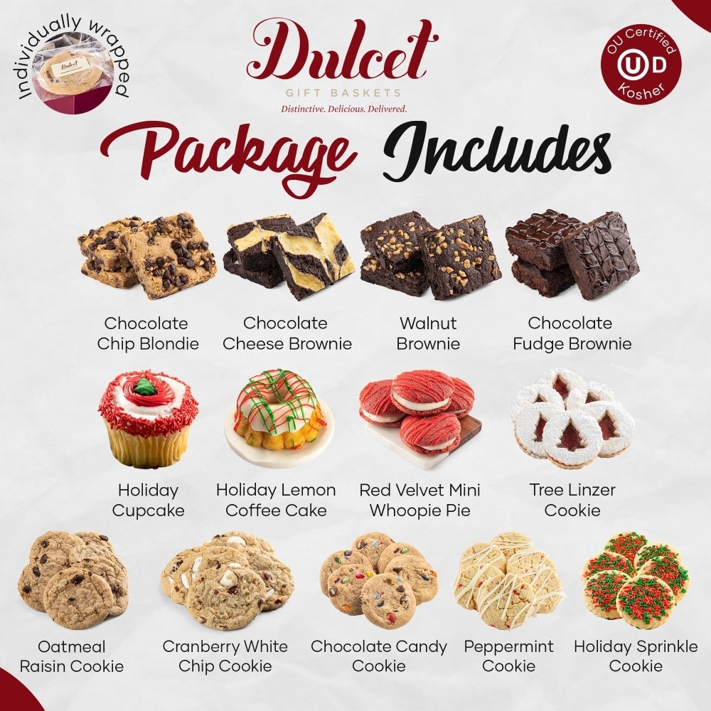 Dulcet Gift Baskets is here to bring you the gold standard in baked goods!All of our items are baked in our own bakery using the finest ingredients and highest standards of freshness. To view the nutritional information of each item, click on the links below. You can also find a list of items in each basket by going to the gift includes tab in the product detail page.