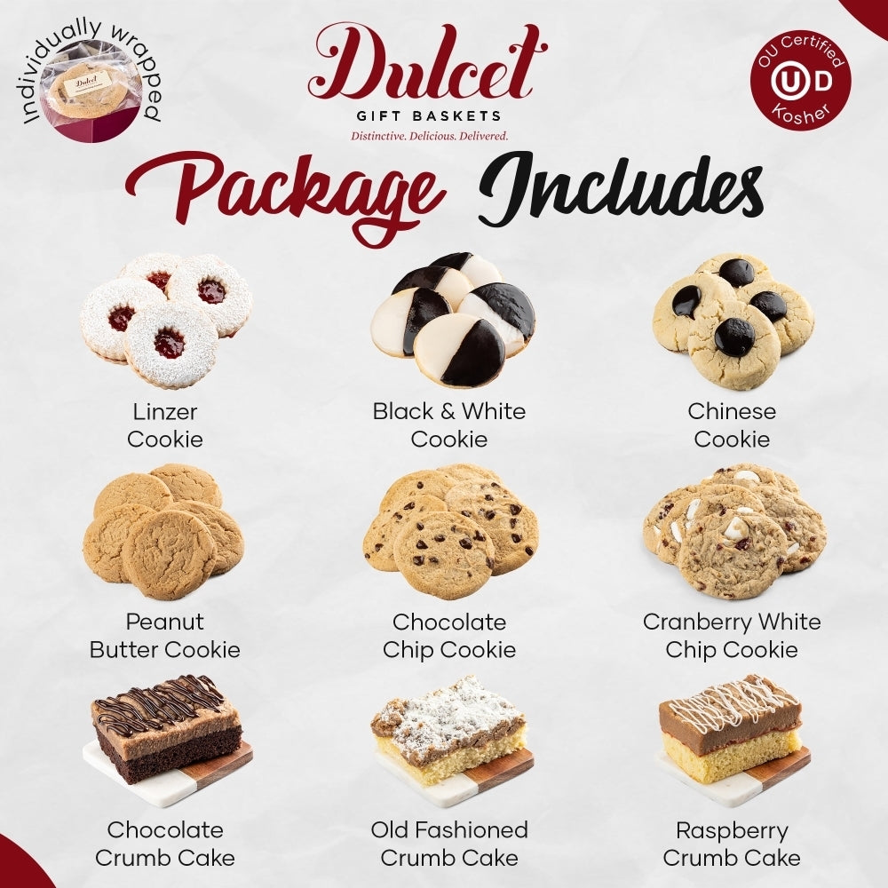 What better way to show your love and support than the crumb cake and cookies variety pack by Dulcet Gift Baskets? Surprise your loved ones with a gourmet gift that they can enjoy each bite at a time.