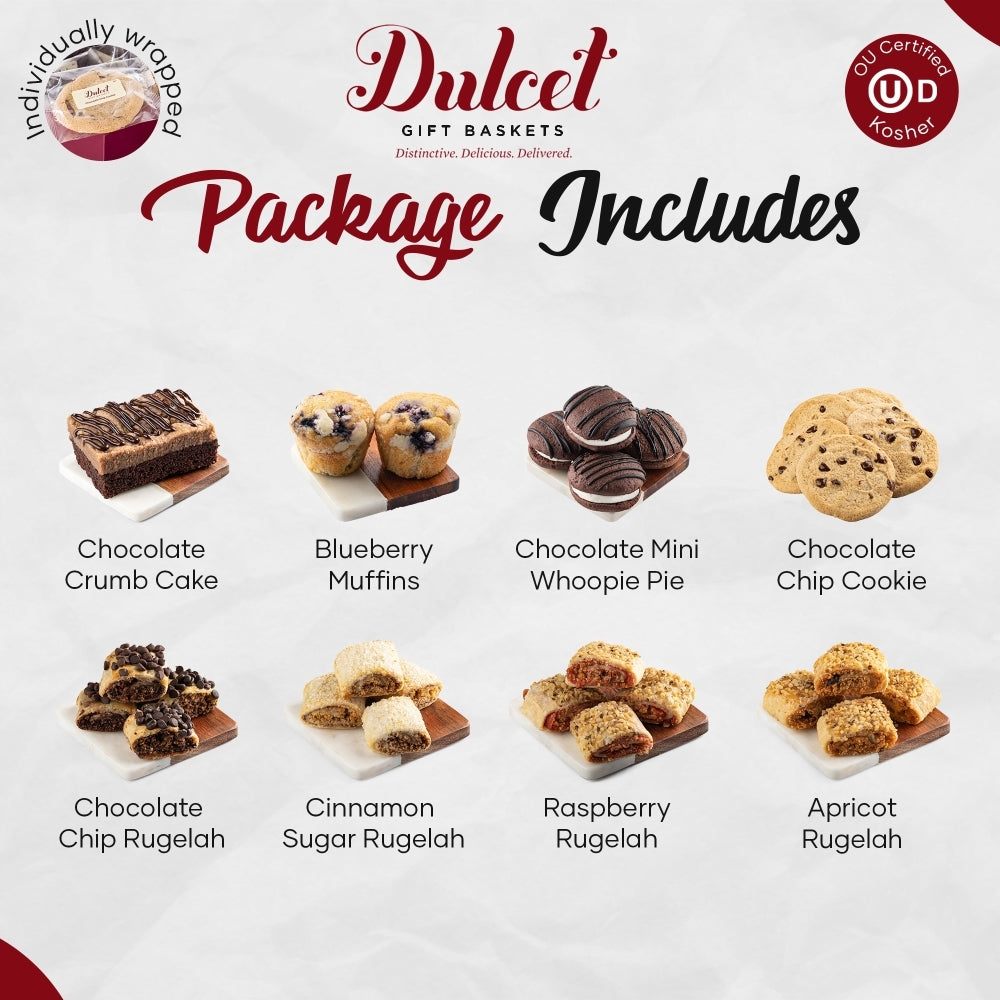 Dulcet Gift Baskets is here to bring you the gold standard in baked goods!All of our items are baked in our own bakery using the finest ingredients and highest standards of freshness. To view the nutritional information of each item, click on the links below. You can also find a list of items in each basket by going to the gift includes tab in the product detail page.
