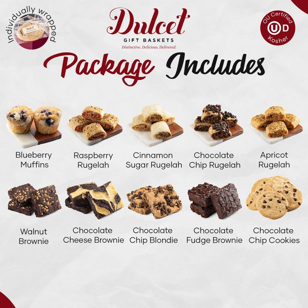 Dulcet Gift Baskets is here to bring you the gold standard in baked goods!All of our items are baked in our own bakery using the finest ingredients and highest standards of freshness. To view the nutritional information of each item, click on the links below. You can also find a list of items in each basket by going to the gift includes tab in the product detail page.