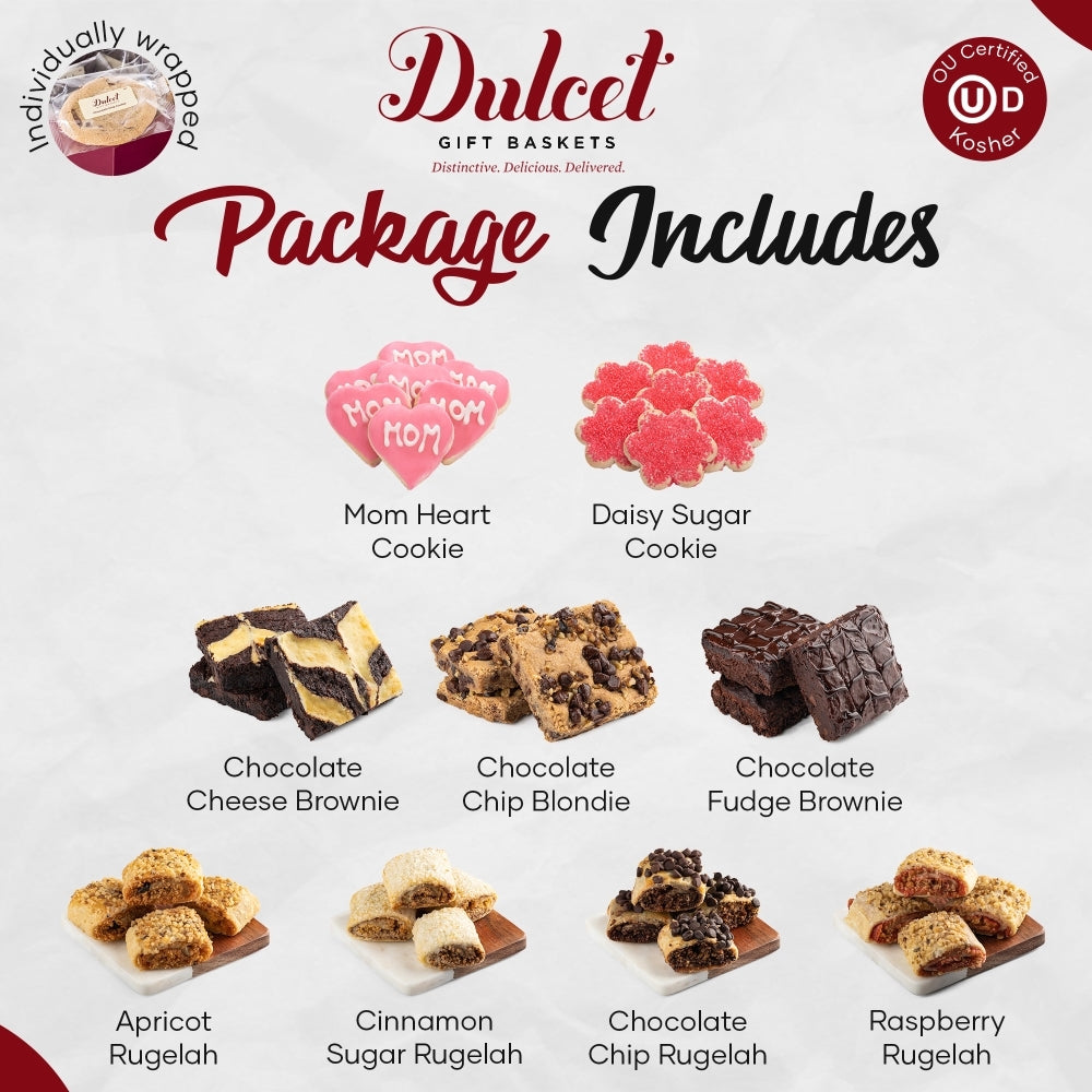 Dulcet Gift Baskets is here to bring you the gold standard in baked goods!All of our items are baked in our own bakery using the finest ingredients and highest standards of freshness. To view the nutritional information of each item, click on the links below. You can also find a list of items in each basket by going to the gift includes tab in the product detail page.