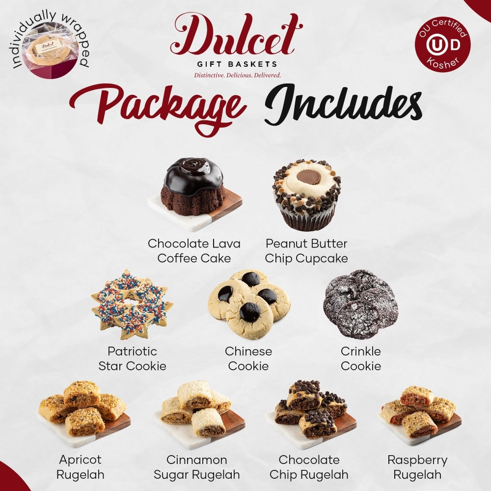 Dulcet Gift Baskets is here to bring you the gold standard in baked goods!All of our items are baked in our own bakery using the finest ingredients and highest standards of freshness. To view the nutritional information of each item, click on the links below. You can also find a list of items in each basket by going to the gift includes tab in the product detail page.