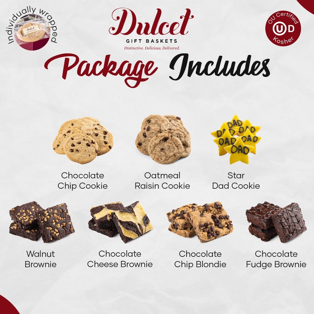Send Dad delicious wishes with his favorite gourmet treats. Does he prefer chocolate or raspberry, brownies, or cinnamon? No problem, Dulcet’s gift basket for dad contains plenty of all and something for every guy to enjoy