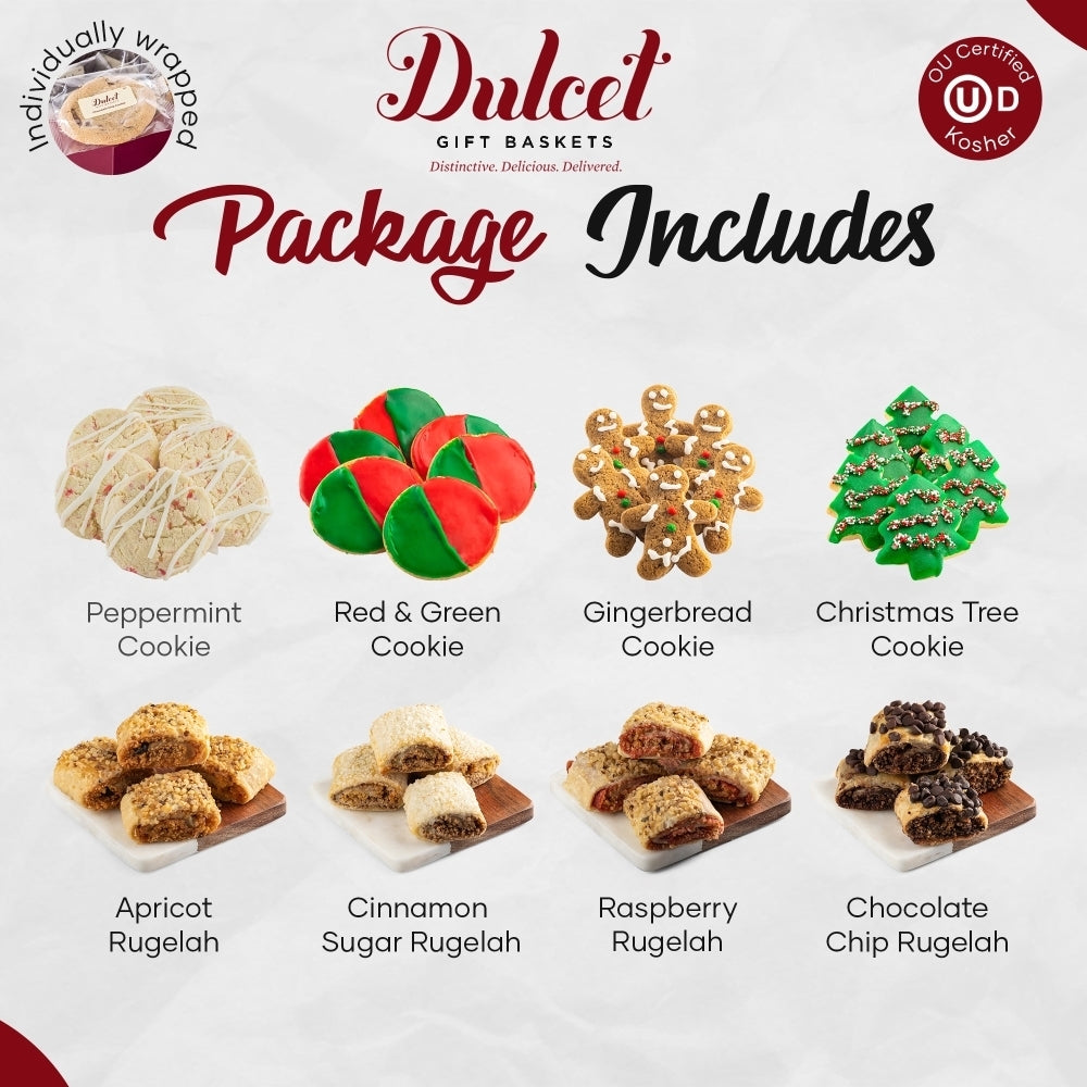 Inspired by the festivity of Christmas, this gourmet gift basket features an array of decadent cakes and cookies.